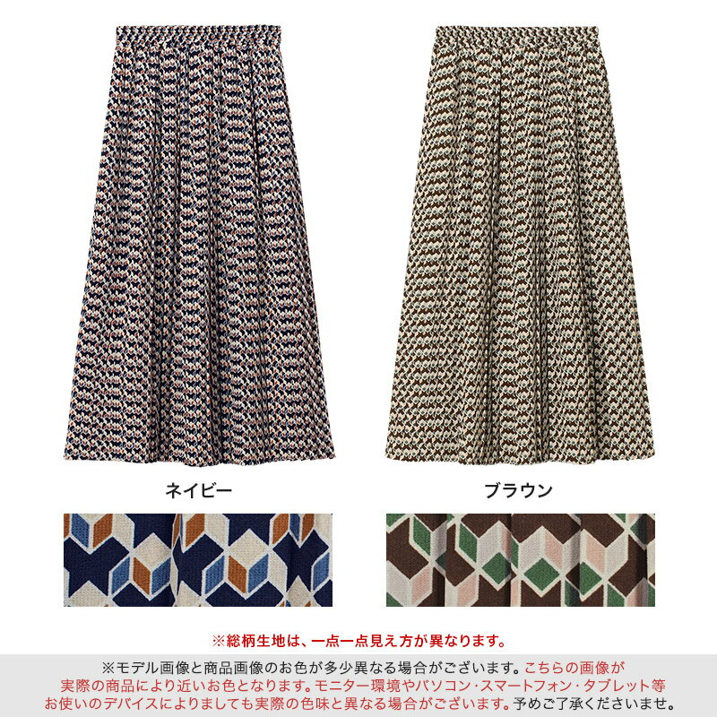 一気にお洒落な雰囲気に“幾何学柄プリーツスカート” 【素材】 軽くてふんわり柔らかな風合いのシフォン素材を使用。