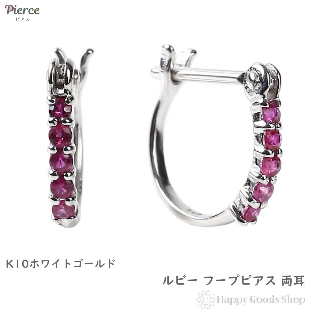 K10 フープ ピアス ルビー 0.1ct ホワイトゴールド エタニティ パヴェ 1.5×10.0mm 中折 両耳 レディース18k 人気 プレゼント 誕生日 女性 彼女 妻 おしゃれ きれい かわいい かっこいい ゴールド アクセサリー ギフト 贈り物 送料無料 ジュエリーケース入り