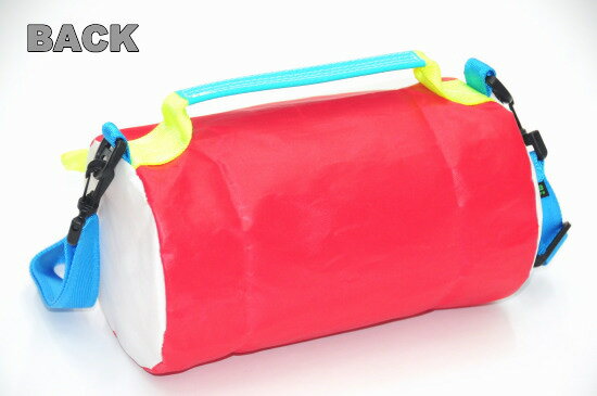 jib JIBバッグ JIBバック JIB バッグ JIB バックJIB セイルバッグ SS43 レッド×ライトブルーファスナーW23×φ13cm 約3L 背面はシンプルな無地なので、ネームを入れると映えます 正面右寄せに刺繍タグ付 スッキリと丁寧に取り付けられたファスナー キレイな円筒形のコンパクトなショルダーバッグです バッグトップに持ち手も付いています ■JIBセイルバッグ SS43 小型の筒型ショルダーバッグです。